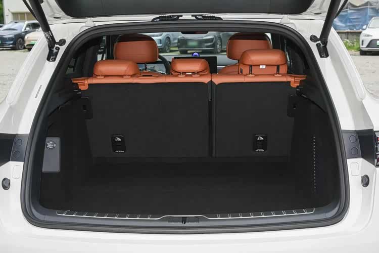新款问界M5还是沿用老款的两种尺寸设计,其中增程版车型的长宽高轴距分别为4785mm、1930mm、1625mm、2880mm,纯电版车型的高小5mm,其它尺寸一样,妥妥的中型SUV。此外,据身高179cm人士实测,前排座椅调至最低,头部有氧空间大约两拳,前排不动来到后排,头部活动范围尚有一拳二指左右,腿部活动空间大约一拳四指,座椅的填充物很软,支撑感和包裹感很强,但头枕偏硬,而且后排有微微凸起的地台,会影响放脚的舒适性。其次,尾部行李舱容积为369L,可放2个28英寸行李箱和一个20英寸的行李箱,后排座椅4:6放倒后,储物空间可拓展到776L,装载能力没有优势。