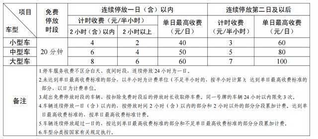 第一天最高收费40元;连续停放第二天及以后,每半小时收费3元,单日最高收费60元。