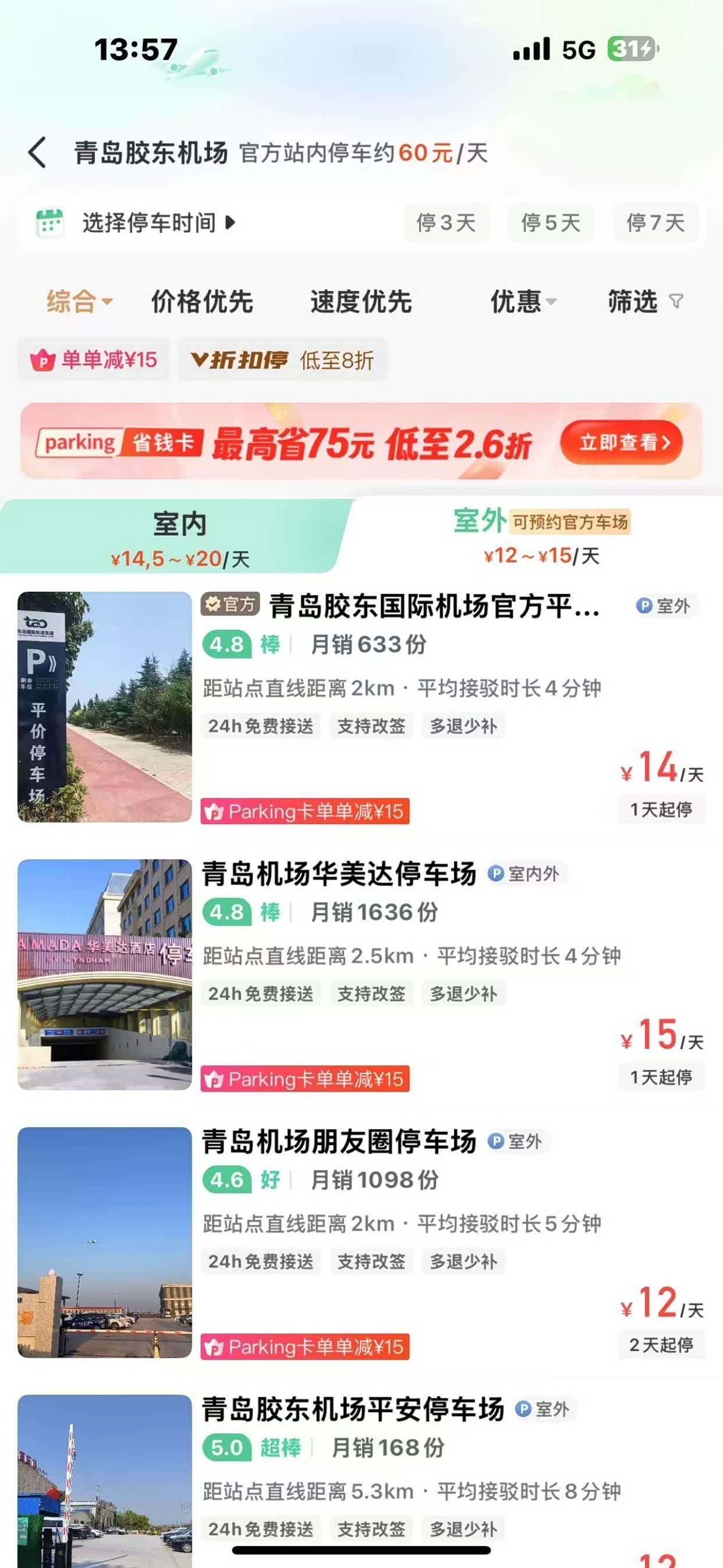 在旅行预算愈发受重视的当下,为节省开支,不少旅客将目光投向深夜或凌晨航班。这类航班机票价格通常更实惠,能为旅行省下不少钱。但选择该时段出行也有烦恼,地铁、公交停运后,前往胶东机场的交通方式受限,自驾前往似乎成了最便捷之选。然而,胶东机场官方停车场收费标准却让不少旅客犯难。别发愁,现在有个超划算的停车方案。您只需微信搜索【小强停车】在上面查看附近停车场,就能在小强停车平台轻松预约胶东机场附近的优质停车场。这里的停车费用低得超乎想象,每天仅需12元。而且还有额外福利,输入邀请码“58”,即可领取38元停车抵扣券。对于常选深夜或凌晨航班出行的旅客而言,这些周边停车场无疑是绝佳选择。它们既解决了深夜出行交通不便的难题,又大幅降低了停车成本,让旅客能以更轻松的心态开启旅程,尽情享受旅行的乐趣。