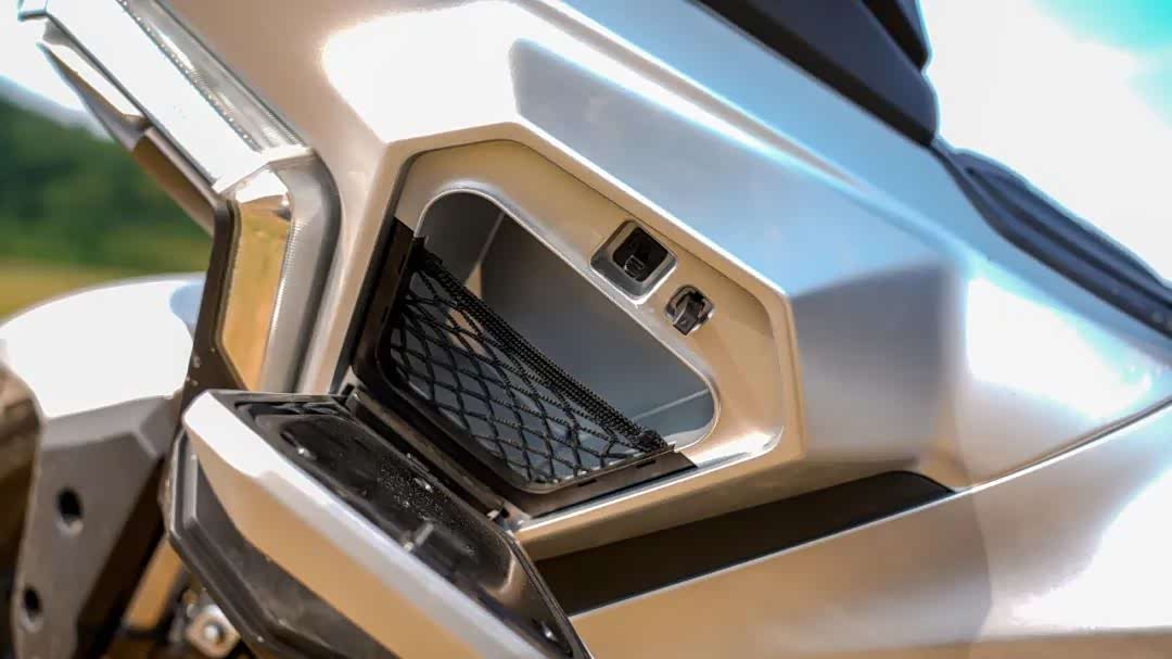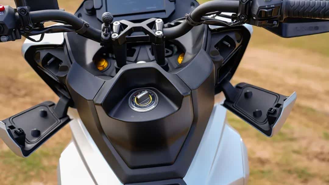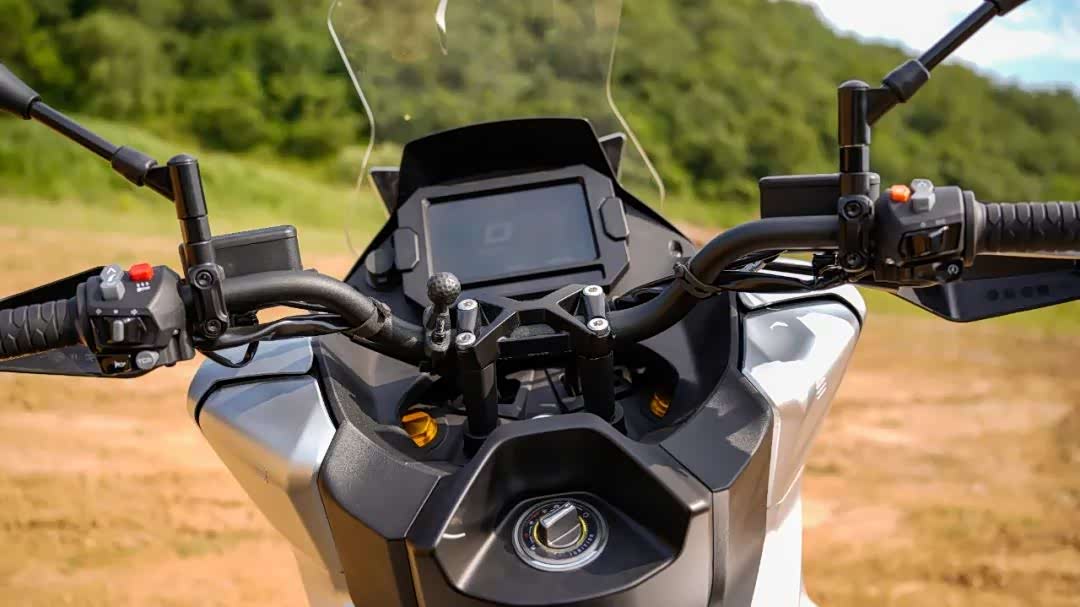 其次是国产同级别踏板中独一无二的电动风挡,在我们行进途中也可以通过手把按键调节风挡高度,便利性直接拉满,与此同时,原厂标配了前后双摄行车记录仪,在旅行途中的安全性直接拉满。