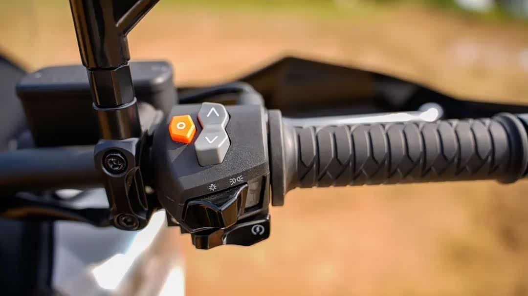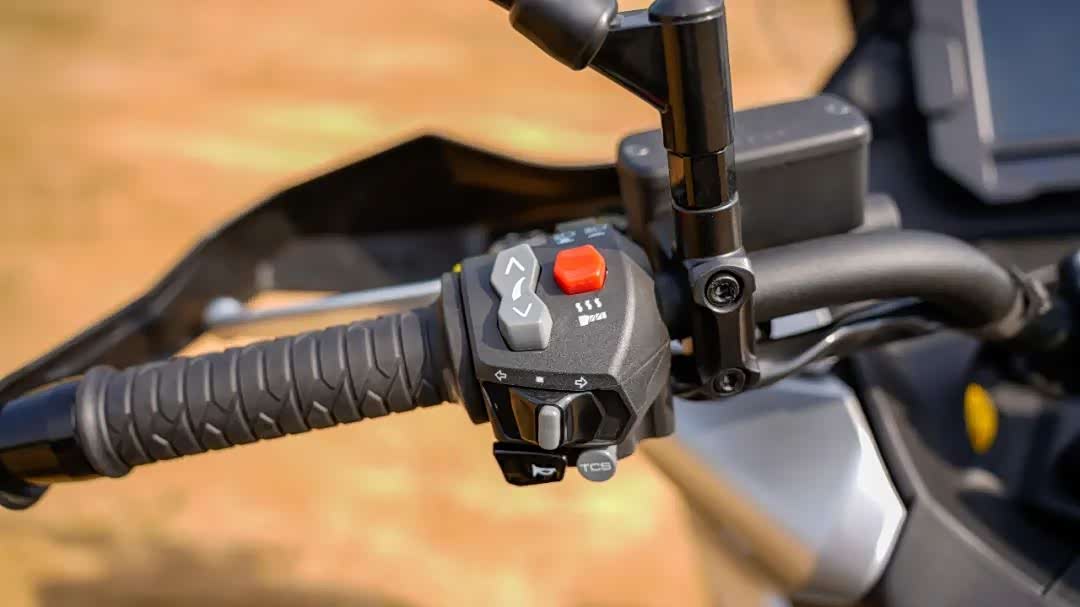 手把按键依然是经典的光阳家族式风格,按键的阻尼质感出色,左侧手把设置了单独的电动风挡按键,行驶中也可以进行调节,更为便利,同时TCS可通过短按关闭,更具玩乐性,右侧手把按键将双闪按钮融合在启动按键,通过上下按键调节屏幕内设置以及导航功能。