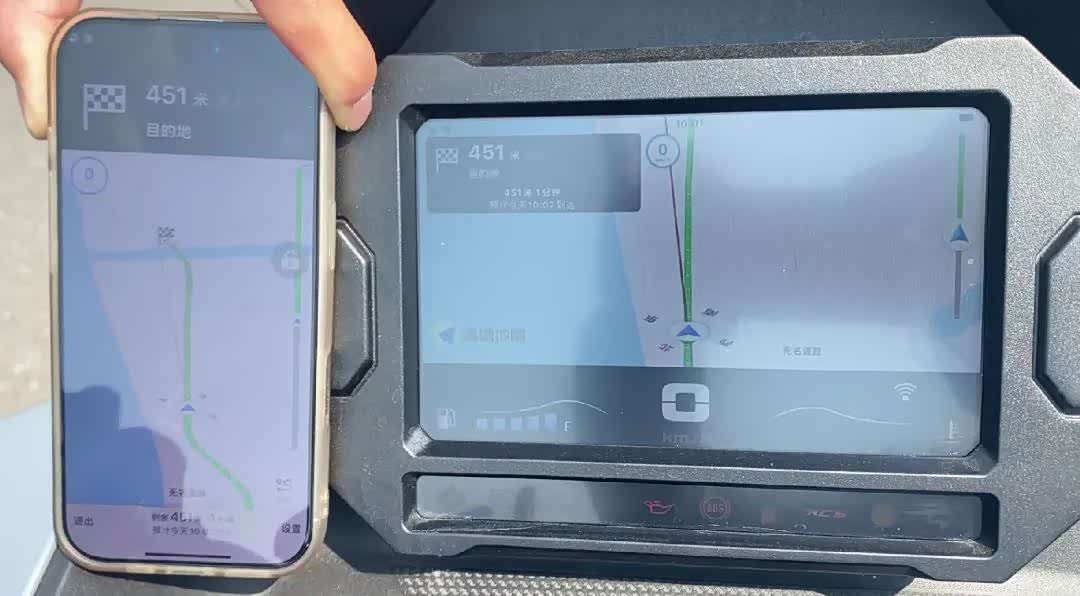仪表X350配备了一块7英寸尺寸的TFT全彩液晶仪表,车速、转速、水温、油量显示外,通过左侧手把上的按键还可以切换3档电加热手把的显示,连接光阳之家后可以使用导航功能,APP锁屏手机屏幕全黑后,不影响投屏导航。唯一有些遗憾的是没有胎压检测(本田ADV350也没有),经常摩旅的,可以安装一个外置的。