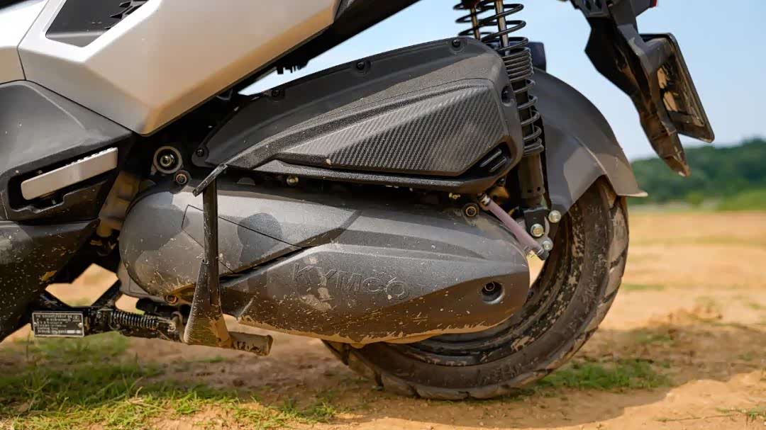 轮胎方面采用腾森品牌,前120/70-15后140/70-14半热熔龟背胎,对于一台跨界踏板来看,这是足够明智的设定,对公路与非铺装路面做了一定的兼顾。