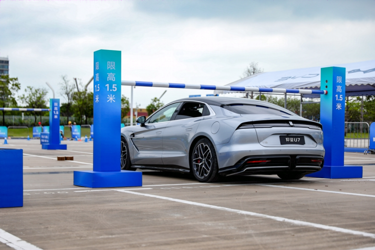 与此同时,在展台参观时就对仰望U7大加称赞的三位TVB女神陈敏之、朱晨丽、陈滢,来到外场区域也不约而同坐上了U7,体验它在云辇-Z加持下,带来的负侧倾、极限通过等全新操控体验。从现场视频里来看,仰望U7挑战了极为特殊的障碍物,几个1.5m限高杆依次排开,中间路上还摆着一个个小障碍物。也就是说,U7必须在到限高杆前就把车身高度降下来,然后过了立马要升起来,对车身控制的感知和调节的速度、精度,都提出了极大的考验。当然,这对于云辇-Z来说简直是小菜一碟,只见U7行驶中车身快速上上下下,没有碰到限高杆,也没有蹭到障碍物。U7这一波“神操作”,直接让三位女神惊呼:“好劲啊!”