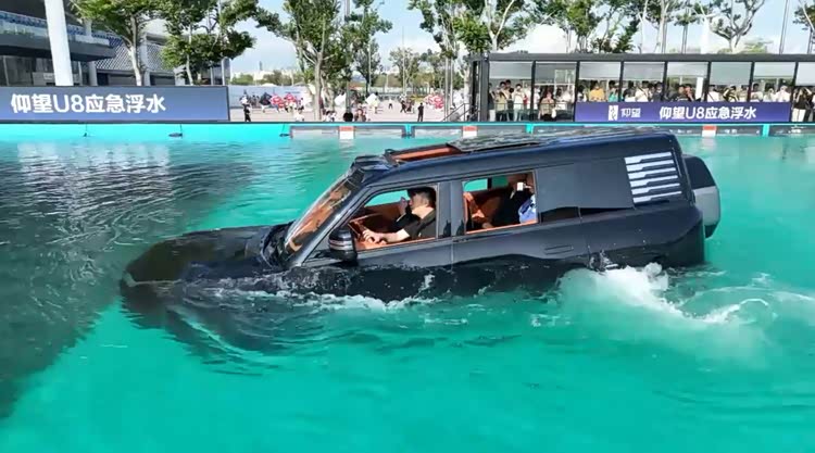 今年仰望体验区的第一大亮点,那便是仰望U8的浮水体验全新升级,搭配智能越野爬行,依靠易四方“上天又入水”。TVB飞虎系列三大男神马国明、马德钟、张兆辉来到外场区域,就直奔大水池上车体验。说到应急浮水,可绝对是仰望构筑的极致安全里的重要一环。马上夏季来临,大家有可能遭遇暴雨内涝等极端场景,应急浮水就是在这种紧急时刻最大限度保障用户安全的被动安全功能。得益于易四方加上核心部件IP68级防水,仰望U8在应急浮水状态下,可实现30分钟车内无显见积水,车辆依旧稳定可控,有效帮助用户保持镇定,避免恐慌,最大程度应急自救。体验后,三大男神都连连感慨,“这绝对是前所未有的安全功能,仰望U8无愧‘最强神车’!”