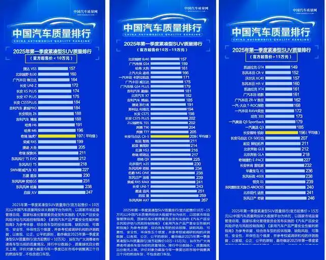 再来看下2025年紧凑型燃油SUV质量最新排行,根据起售价不同,榜单共分为三大部分!其中,起售价低于10万元的紧凑型燃油SUV,捷达VS5夺得了头名,锋兰达、博越、长安CS55 PLUS、哈弗H6和哈弗M6等月销过万的车型,质量表现都还不错。