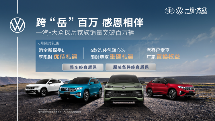 从“商品力领先”到“口碑与品质双优”,探岳家族用七年时间构建起了难以替代的市场优势。站在100万辆下线的新起点上,探岳家族将继续以技术创新为引擎,加速推进商品迭代与智能化升级,让每一次进化都能精准匹配时代需求。同时,一汽-大众也将以更前瞻的商品布局、更高效的体系能力、更富温度的客户服务,在电动化与智能化浪潮中,持续引领合资品牌向“高端化、年轻化、多元化”跃迁,书写中国汽车市场的全新价值篇章。