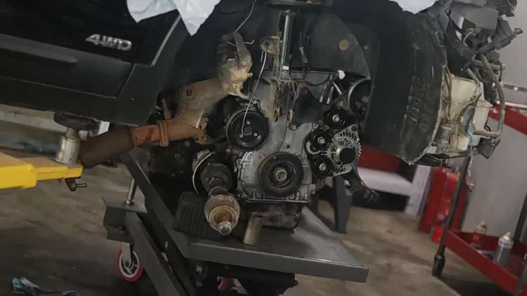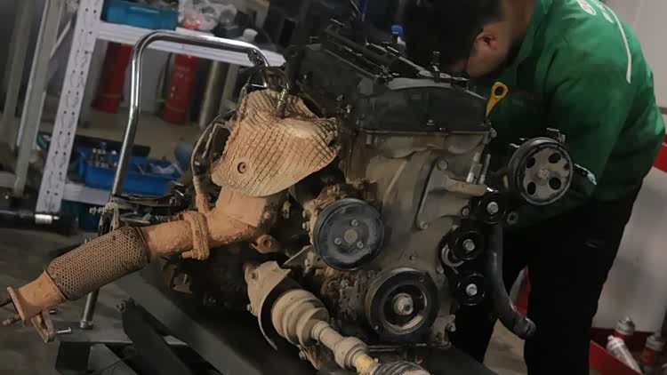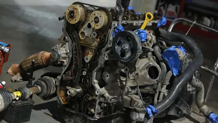 发动机抬下来了,漏油的地方太多,然后还有动力不足的问题也找到了。