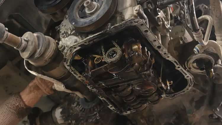拆掉油底壳,这里面机械都脏死了。