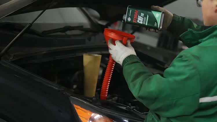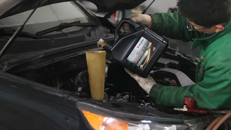 先添加发动机内部清洗剂,把旧油和杂质放干净。