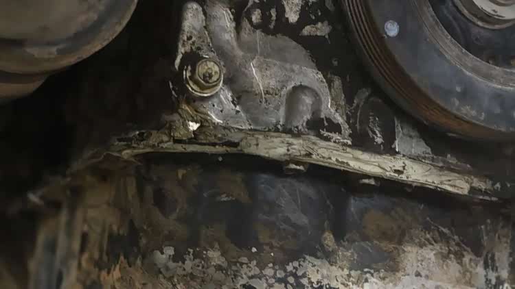 准备拆解发动机时,发现一个神操作,这车之前油底壳漏油,修理店直接不拆油底壳,在外面封了一圈胶。然后现在又漏了,纯属治标不治本,不漏才怪呢!