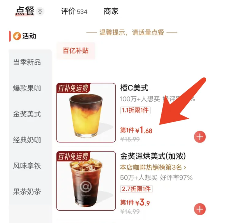 外卖平台补贴战,咖啡低至1元起