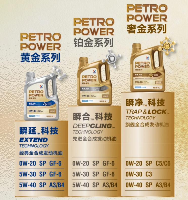 沙特阿美PETROPOWER机油旗下包含奢金系列、铂金系列和黄金系列这三个系列产品,定位由高至低。此机油专门针对豪华车发动机研发,满足各大主机厂原厂OEM技术要求。奢金系列能符合大众、奔驰、宝马、保时捷等技术标准,铂金系列则达到奔驰、雷诺、大众、福特、克莱斯勒等标准。