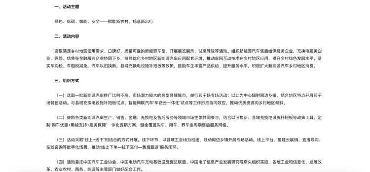 6月3日,工信部联合发改委、商务部等部门,发布了「五部门关于开展2025年新能源汽车下乡活动的通知」。通知提到,要选取一批满足乡村地区使用需求、口碑好、质量可靠的新能源车型,在部分新能源汽车推广比例不高、市场潜力较大的典型县域城市,举行「新能源汽车下乡」活动。
