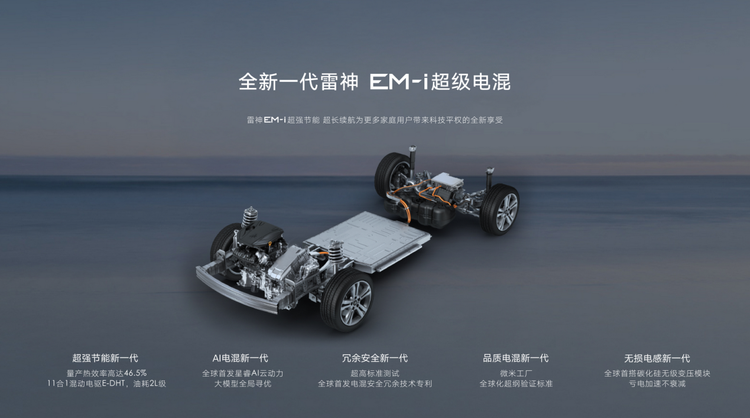 搭载量产发动机热效率46.5%的雷神EM-i超级电混系统,配合11合1电驱模块与AI能量管理系统,官方CLTC亏电油耗3.75L/100km的数据已足够惊艳,而实测城市通勤竟能跑到3.1L/100km。满油满电1420km续航,从北京开到青岛无需加油补电,真正实现“一箱油跨三省”。