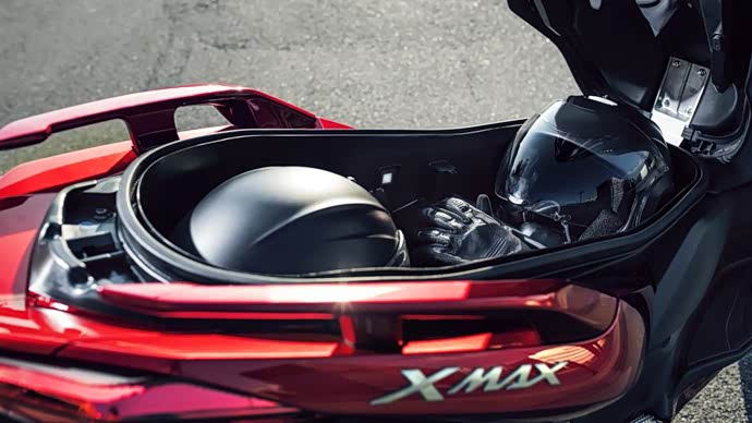 另外XMAX 125还搭载TCS循迹防滑系统,虽然以125cc级距的动力来说较不易发生因动力过大而造成的打滑现象,不过针对较为入门的初学者来说,则是一项相当贴心的安全配备,相对于多雨的台湾,TCS对于骑乘上来说更多了份保障。座垫下的置物空间能透过Smart Key开启,一顶全盔、半盔以及随车物品都能够非常轻松地置入其中,尤其是平坦的设计更有利于车厢空间的使用。