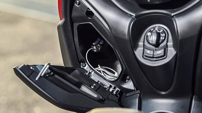 排气管及传动盖与XMAX 300则有着明显的差异。在配备的部分XMAX 125也同样搭载LED大灯组及尾灯组,提供优良的照明性及辨识性,导入Smart Key智能钥匙系统,够通过Smart Key开关电门、置物箱以及油箱。手把下方两侧皆有前置物空间,左边的手套箱当中更具备USB充电座,能够为3C产品进行供电,非常便利。