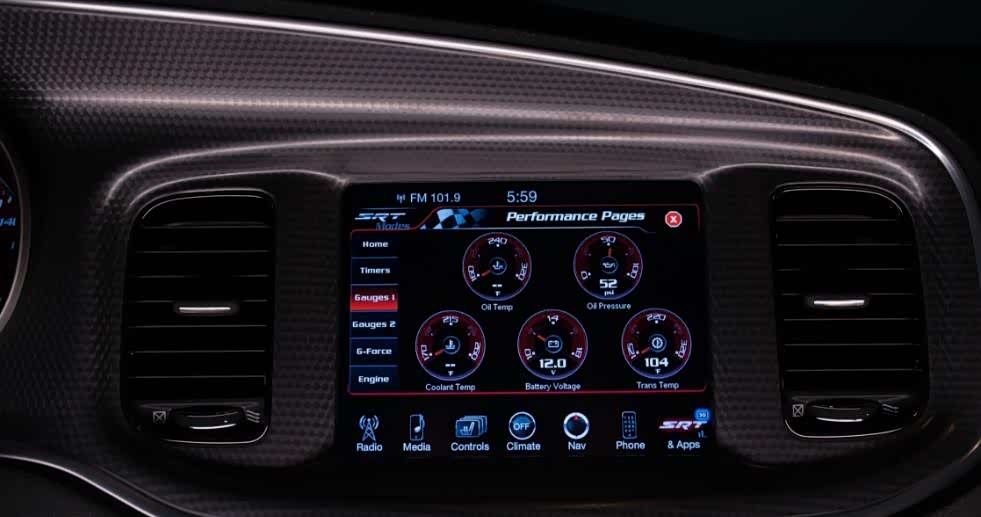 意想不到的是,战马地狱猫在高速巡航和舒适模式下的隔音做的却像一台商务四门房车。几乎听不见发动机的吵闹。而配置方面也拥有:自适应悬架,四种驾驶模式选择,循迹系统以及和雷诺R.S系列车型一样喜欢展示运动数据:如加速度、横向G值,赛道圈速统计。座椅也不同于其他性能车那么硬,在提供包裹性的同时,战马地狱猫上的座椅有着大沙发般的舒适。