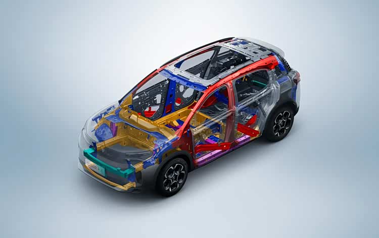 车身强度方面,新车高强度钢使用比例高达65.06%,在A柱和B柱、车顶轨道、门下围挡、门槛梁等部位大量使用热成型钢(PHS),形成“太空舱”结构,可以在发生严重碰撞时减小变形量,保护车内乘员安全。