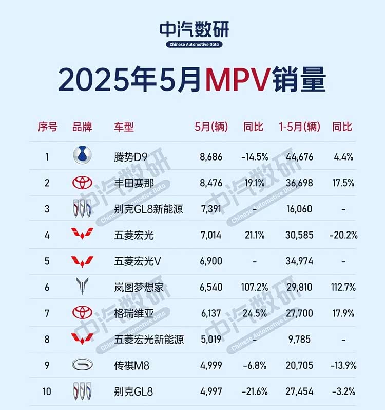 中汽研5月MPV销量榜单,揭开了MPV市场激烈洗牌的序幕。传统巨头与新势力正面交锋,胜负天平正悄然倾斜。