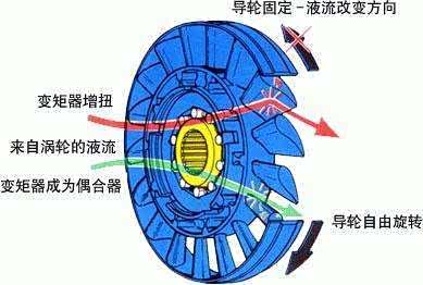 那么,中间的导轮有什么用呢?刚刚说到两边的转速是不同的,由于液体的特性,液压油回流时会有成涡轮状,方向与泵轮相反,于是会对跟发动机硬链接的泵轮造成冲击,从而会有顿挫的感觉,这样岂不是得不偿失了。