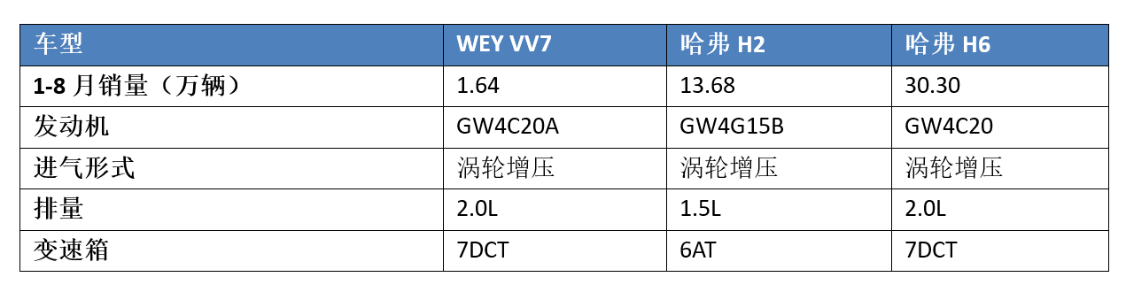不考虑手动车型,这三款车型涉及到了4C20A和GW4G15B两种长城的主流发动机,排量也对应了1.5L和2.0L两种长城汽车的常用排量,同时匹配了7DCT\6AT变速箱。