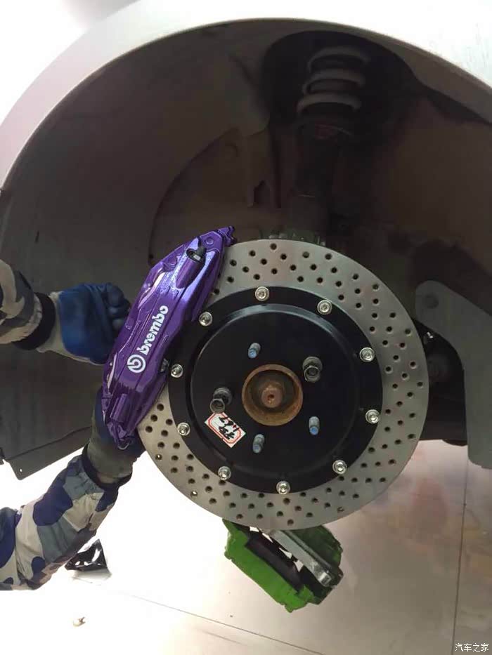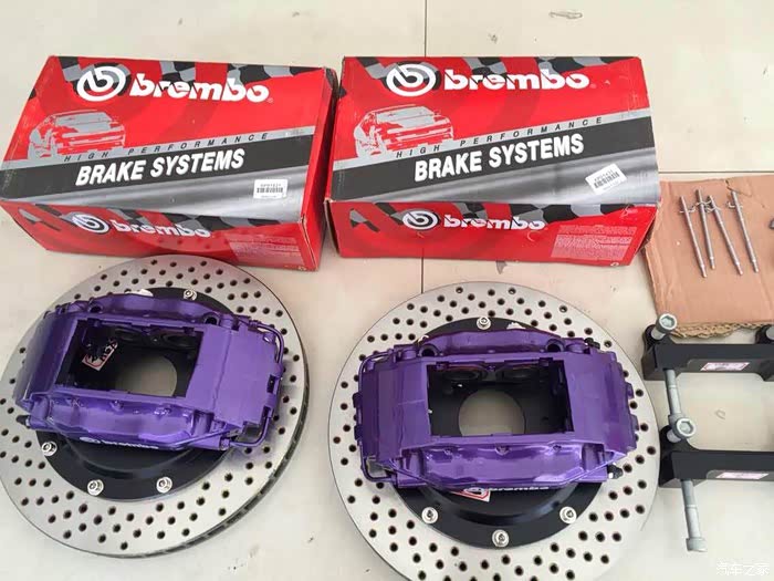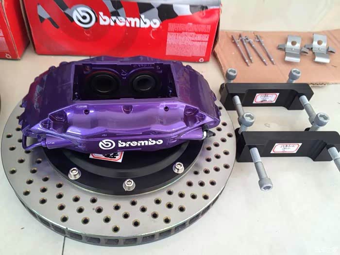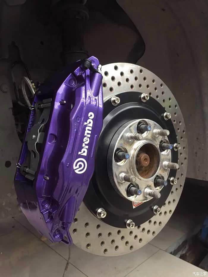 几个月后,果断入手brembo F50+355分体盘,优点呢,高大上,霸气。制动性能也很强,60码秒停,刹车距离短,用惯了这刹车,开普通车就不习惯了。唯一缺点就是贵,省吃俭用啊!