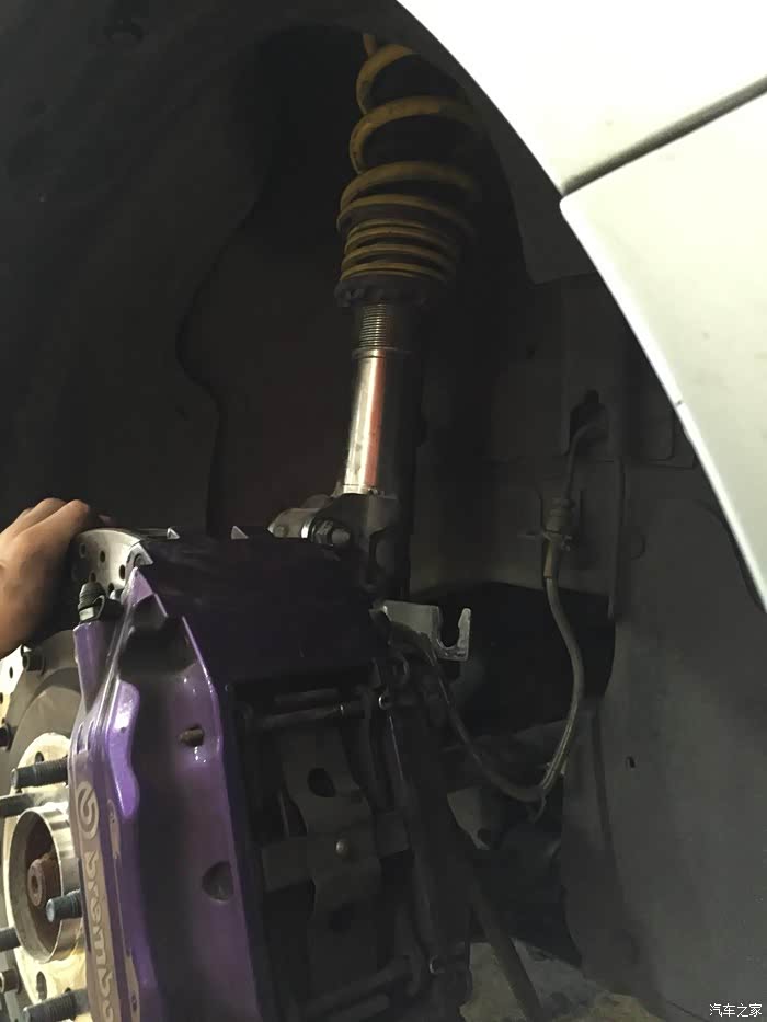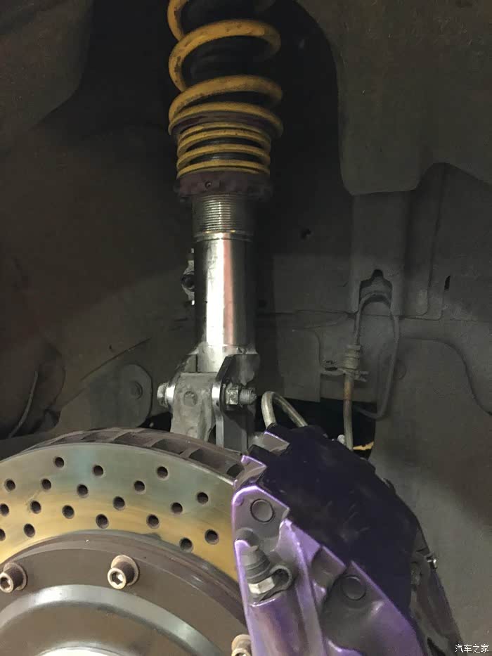 车主也是从金色TEIN开始,到现在大家看到的KW V1绞牙避震。前避震双弹簧,一个小的一个大的,现在过小坑都直接开过去,只感觉比原厂稍微硬一点,总的来说,还是比较满意,而目前0指的车身高度也是完美了。