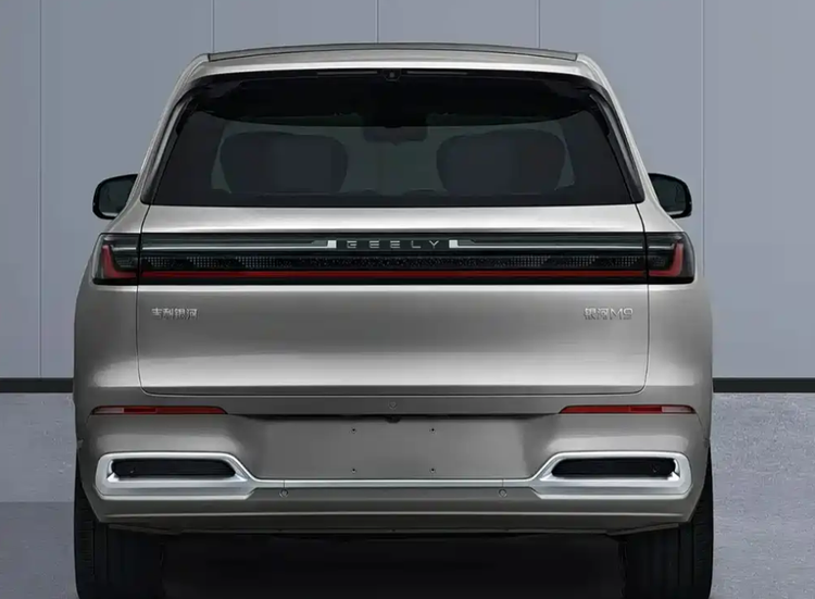 银河 M9,作为吉利银河系列的旗舰 SUV,身形颇为庞大,长宽高分别为 5205×1999×1800mm,轴距达到 3030mm,直接与理想 L9、深蓝 S09 等车型展开竞争。其设计灵感源自 “ 银河星舰(参数|询价)” 原型车,车顶配备的激光雷达与贯穿式尾灯,成为极具科技感的标志性元素。双边四出排气装饰件虽主要为视觉设计,却成功强化了整车的运动气场。
