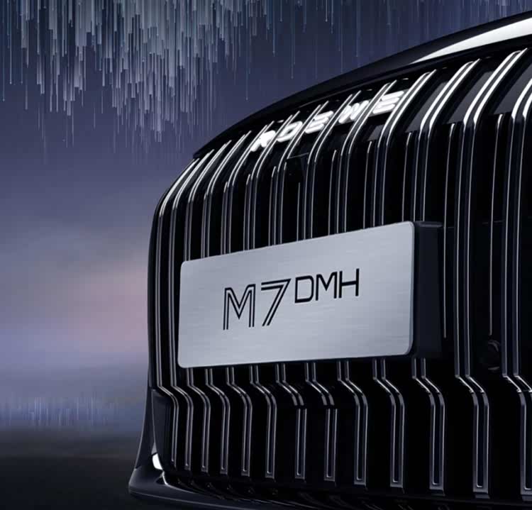 然而这种色彩魅力难掩其身份之谜,尽管荣威明确将M7 DMH定义为一款插混中大型轿车,车身尺寸数据却显露另一个故事:4940mm的长度与2820mm的轴距,清晰指向中型轿车领域。前脸醒目的竖条幅格栅内嵌发光ROEWE字母标识,配合分离布置的大灯组合,在延续家族风格与寻求辨识度之间取得平衡。车顶优美的流线向下延展,配合恰到好处的短车尾与贯穿式尾灯,营造出不夸张的动感效果。镀铬饰条与密集轮辐设计明确传递其对成熟审美的倾向,实用有余,突破不足。