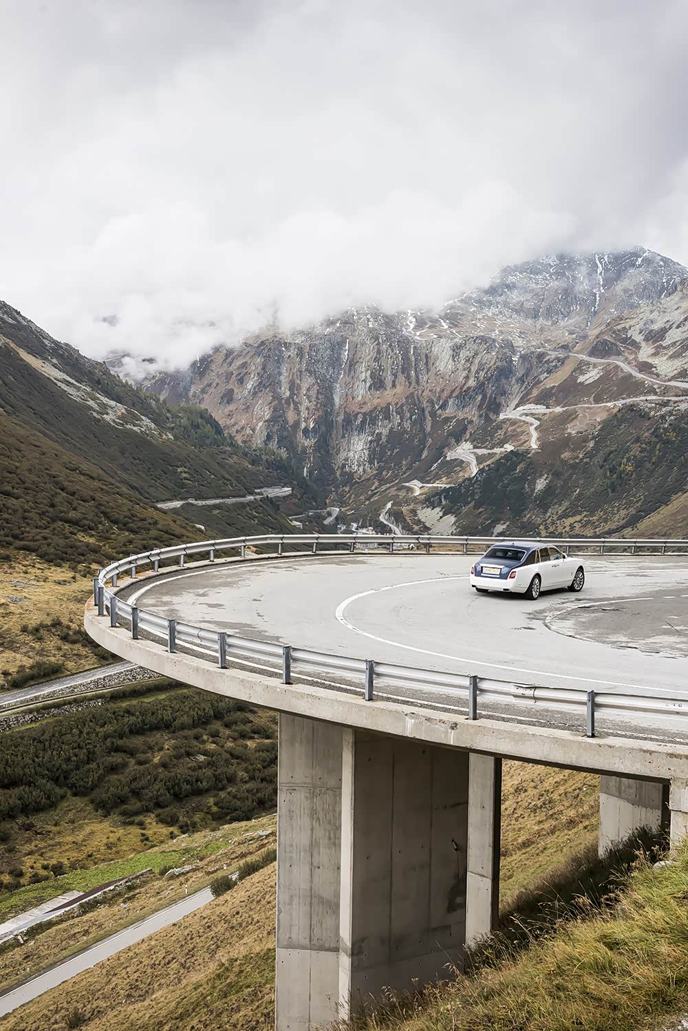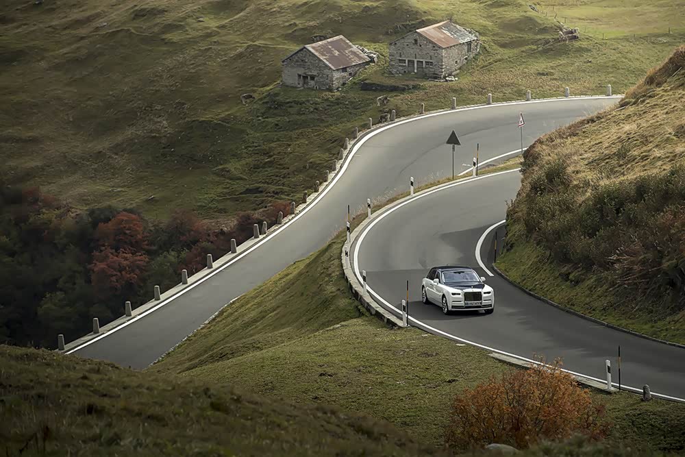 巨大的扭矩意味着新幻影可以用上超高的主传动比和超大尺寸的轮胎,结果就是降低了转速和噪音,让驾驶者有真实的举重若轻的感觉。而悬架电子控制装置(控制着减震器、弹簧和稳定杆)提升了车身的灵活性。还有一点让我们在瑞士攀爬阿尔卑斯山的蜿蜒小道非常受用,那就是新幻影还配备了四轮转向系统,让它在过弯时有更精准的循迹能力。