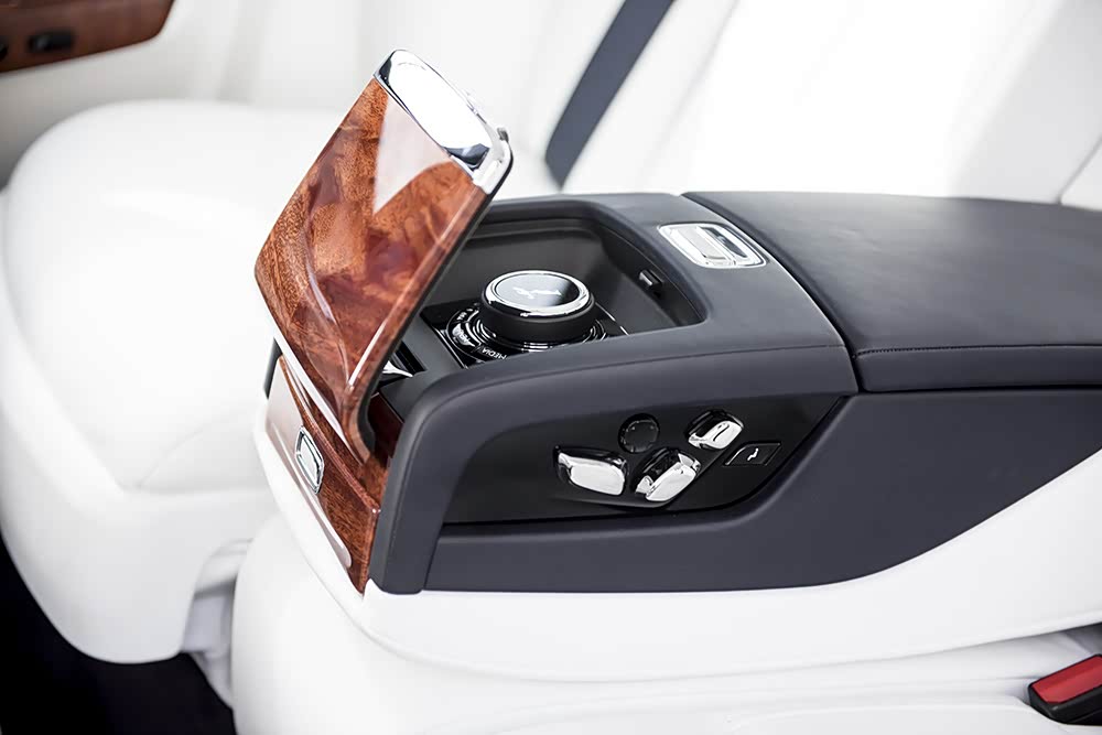 和以往一样,后排也有各式各样的控制装置。(第8代幻影标准轴距版后排)