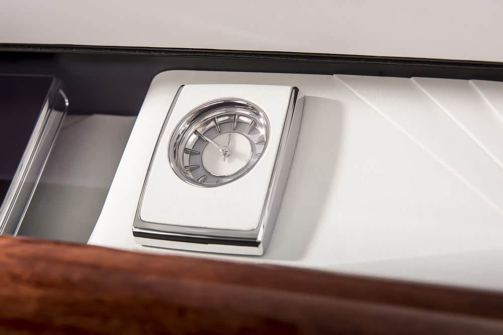 和以前一样样,在后排客户可以选择莱斯莱斯称为“会客室沙发”、更适合社交的条凳式座椅(这是我的最爱),也可以选择两个独立式座椅,此时中间可以选择固定式控制台或可翻折的手枕。如果选择更显奢华的固定式中控台,椅背之间的空间就是个酒水柜,里面有威士忌酒杯、酒瓶、香槟酒瓶槽和冷藏箱。