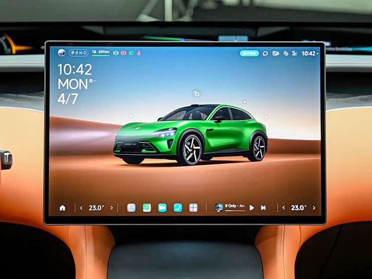 在内部装饰方面,小米YU7采纳了双区环绕的设计哲学,为用户带来了极佳的包裹感。此外,它还提供了松石灰(绿灰双色)、珊瑚橙、暮影蓝以及鸢尾紫(紫灰双色)这四种不同的颜色搭配。在材料选择上,车内的高频接触饰面采用了100%的软包覆盖,以满足其作为豪华车的标准定位。