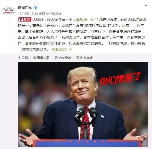 “由于经营情况不善,奇瑞汽车或将被整体出售”