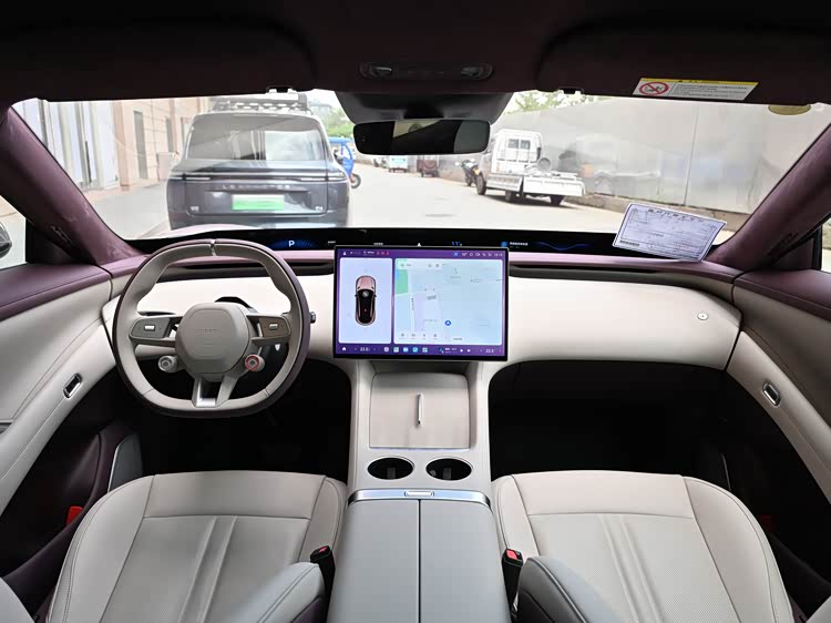 尤其值得一提的是,大灯轮廓与小米SU7相似但细节处有所改动,灯组上半部分镂空并与风道相连,还升级了180度超广角照明,使得夜间行车更加安全。