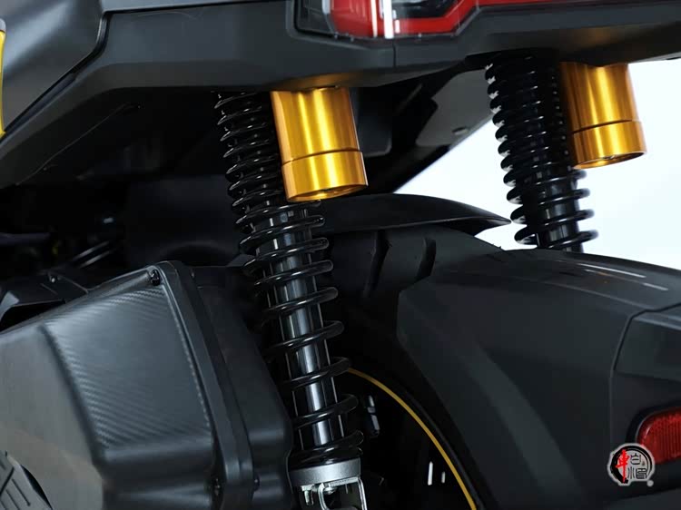 硬件方面, 减震系统调校趋于舒适取向,前悬架采用传统伸缩式正置前叉,搭配液压阻尼双侧气囊后减震,过滤铺装路面颠簸合格。刹车系统采用前后盘刹,前260mm双活塞NISSIN卡钳,后220mm单盘单活塞卡钳。硬件中规中矩,标配博世双通道ABS+TCS牵引力控制系统,提供坚实的安全底线,湿滑路面更加稳定。