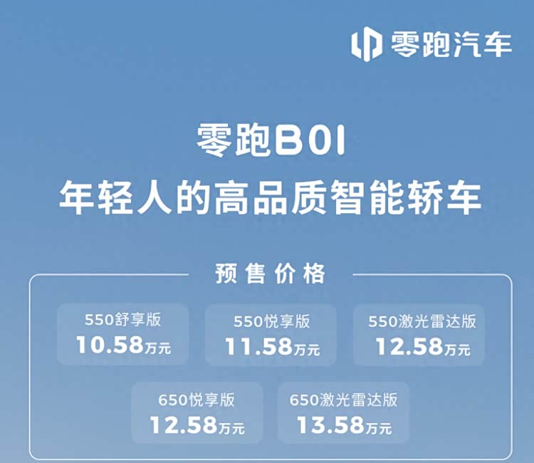 而如今,作为零跑B平台下的首款纯电轿车,基于LEAP 3.5电子电气架构打造的 零跑B01(参数|询价)也正式开启了预售,新车起步续航550km,车身轴距达到了2735mm,上市后将会把小鹏MONA M03作为首要的竞争目标。接下来我们就来看看这台车都有哪些亮点?本次推出的5款车型又该如何选择呢?