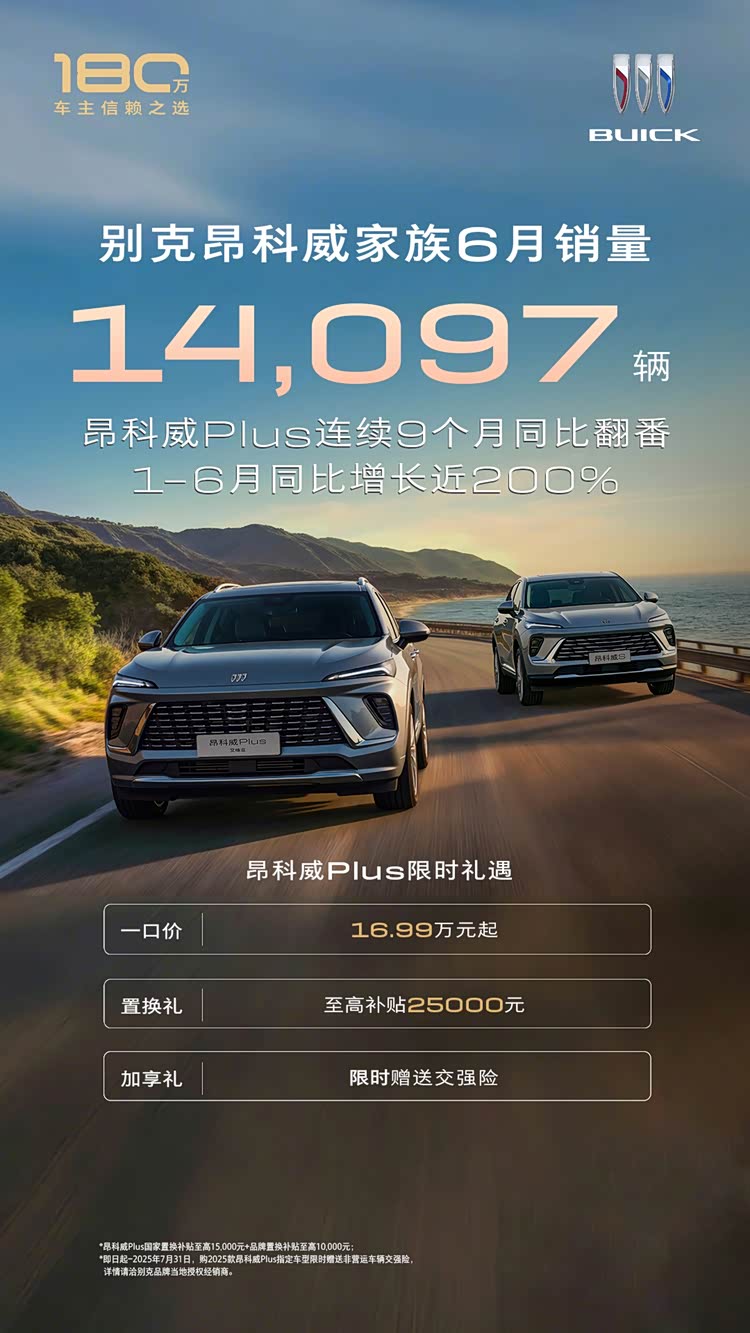 别克昂科威(参数|询价)家族6月销量14,097辆,其中,昂科威Plus单月销量破万,连续9个月同比翻番,1-6月单一车型累计销量同比增长近200%,成为15-20万市场最畅销的燃油SUV。昂科威S今年3月焕新上市,与昂科威Plus组成差异化布局,合力开创15-20万级燃油SUV市场新格局。