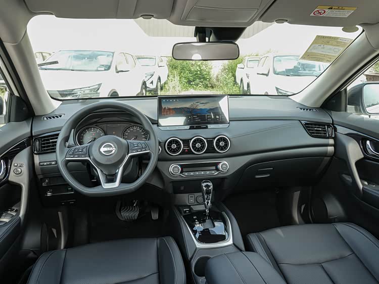 这款车的内部装饰采用了全新的展翼式一体化中控设计,与旧款相比显得更为年轻化。它提供了黑色和深蓝色两种不同的颜色选择,并在门板、座椅和中控台上使用了大量的软质材料进行装饰。该设备配备了12.3英寸的悬浮中控屏和全液晶仪表盘,车载系统内置了NissanConnect 2.0系统,支持语音控制、在线导航、远程车辆控制和手机互联功能,还配备了6扬声器音响和双区自动空调。
