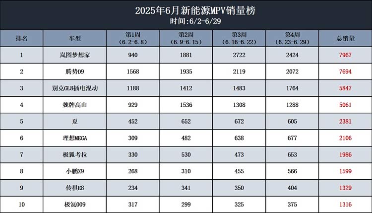 车家号·0浏览·2025-07-09 15:17 · 江西岚图梦想家(参数|询价)以7967台的成绩再次登顶新能源MPV销量榜,成为高端MPV市场中不可忽视的存在。这款车以其优秀的产品力和市场定位,为消费者提供了匹配时代需求的高品质用车选择。