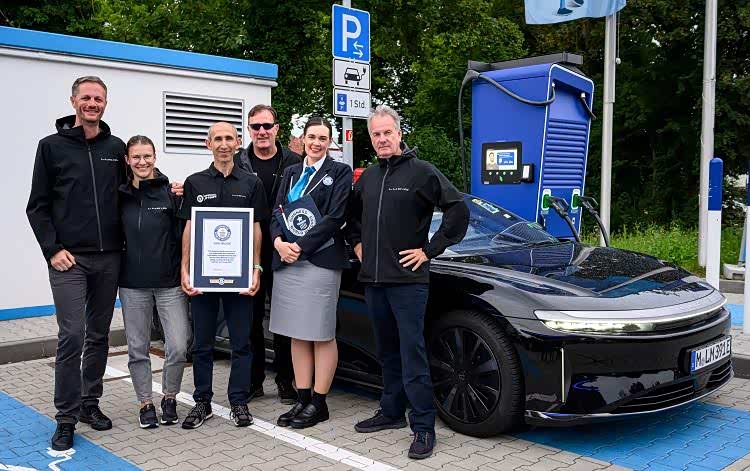 参与测试的车型为 Lucid Air Grand Touring,测试路段为从瑞士圣莫里茨到德国慕尼黑的超长距离驾驶,总里程达 749 英里(约 1205 公里)。沿途有山路、高速和普通公路。这一成绩相比今年 6 月创下的纪录(1045 公里)多出整整 160 公里。