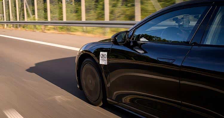而且为了成功实现最远的测试距离,原厂标配的动感造型 20 英寸轮毂也没使用,而是使用了更小尺寸的轮毂,并采用几乎封闭的低风阻设计,能增加约 60-80 公里的续航。