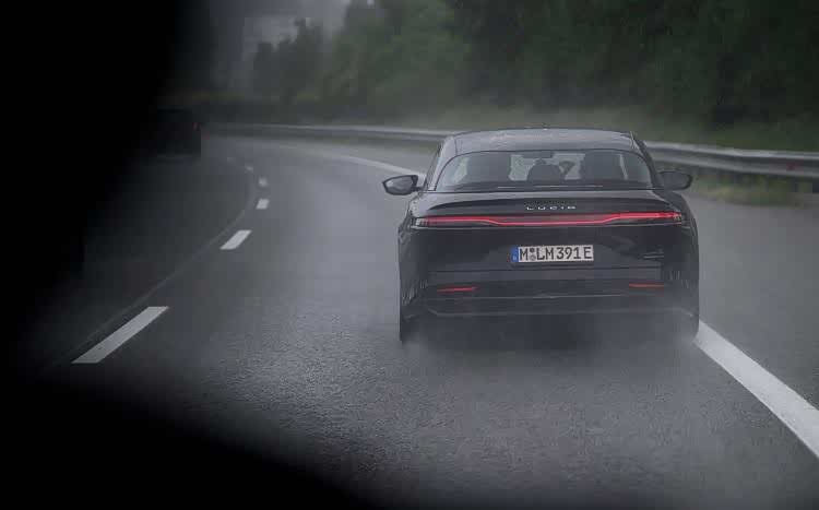 其次,参与测试的这台 Lucid Air Grand Touring 采用单电机后驱设计,相比双电机四驱,这款车型的能量消耗更低,能更有效地使用有限的电能。