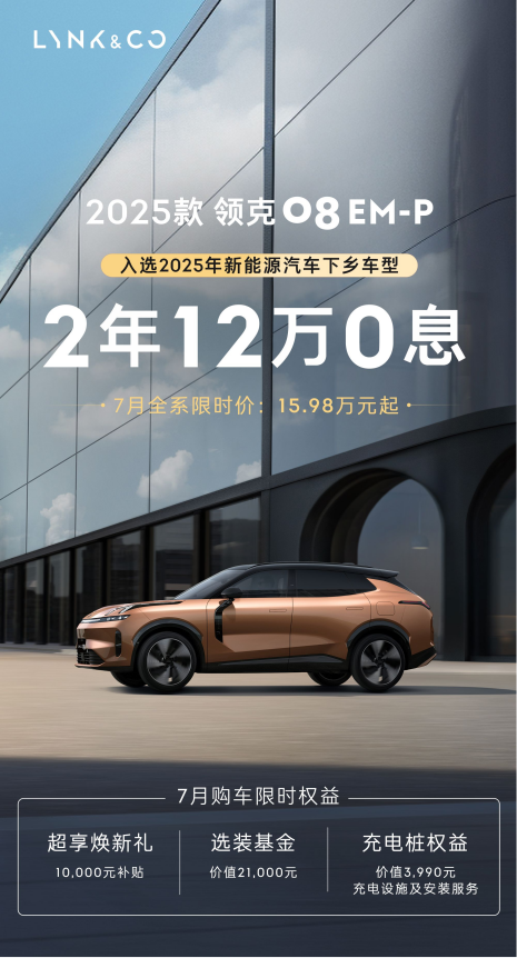 领克08 EM-P不止在产品力上表现卓越,7月的购车政策更给亲子家庭带来实打实福利。15.98万元起的限时价,让这款高品质SUV触手可及。同时,还提供至优2年0息的金融方案,日供仅137元起。相当于每天一百多元支出,就能拥有如此贴心的家庭出行伙伴。