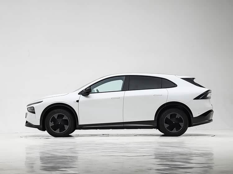 先说外观,就是电车味儿很足的简洁科技风。跟小鹏 P7+ 同一个家族脸:封闭前脸、分体式大灯,上面是狭长的日行灯,下面是矩阵大灯,晚上点亮挺有辨识度。还会自动调光,避免晃到对面司机,这个细节很实用。