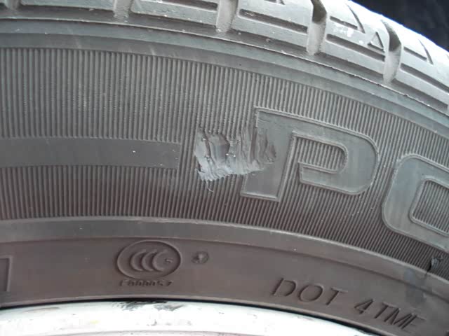 因为路况不好时,大多数人都会减速,除非没看见,而不小心碰着轮胎的情况比较常见,所以也就造成了轮胎外侧鼓包要比内侧的概率大。还有一种现象是轮胎侧壁碰到了尖锐的东西,橡胶被割掉了一块,还没有鼓包,是否要更换呢?一般是露出帘线了就需要更换,说明割的比较深,没有露出帘线还可以继续使用。