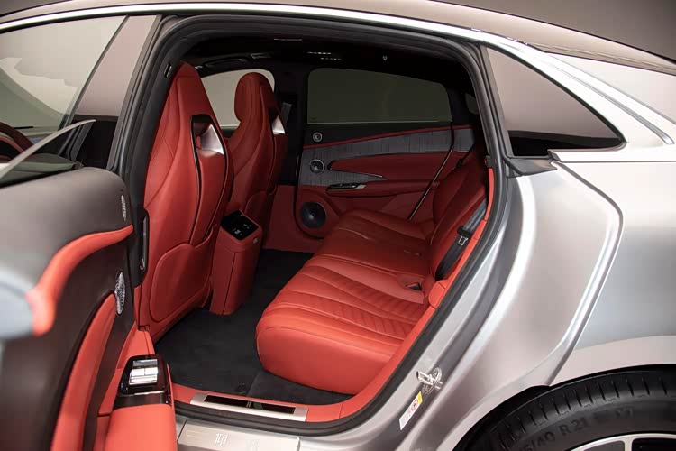 车身侧面得益于5265mm的车身长度显得十分修长,车门采用的是无框的设计,车窗周围配备了镀铬装饰条,提升了一定的档次感,隐藏式门把手的设计也并未缺席,车门中间采用了内凹的处理,增添了一定的层次感,前/后轮胎尺寸均为275/40 R21,并且前/后制动器均为陶瓷通风盘式,一般用于豪华超跑车型,足以证明这台车的性能水平。