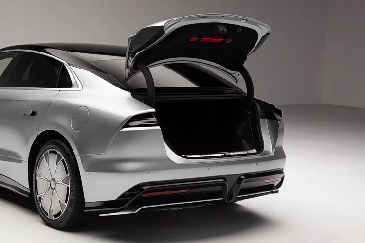 车尾的造型圆润饱满,采用的是大溜背的设计,尾箱盖上配备了随速升降的电动扰流板,提升了一定的运动氛围感,贯穿式的尾灯造型时尚美观,并采用的是内凹的处理,搭配可发光的品牌LOGO,点亮后具有较高的辨识度,底部则在包围两侧配备了红色反光条,增添了一定的行车安全性。