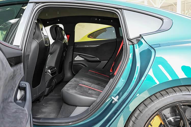 小米SU7 Ultra定位是中大型车,车身长宽高为5070x1970x1465mm,轴距为3000mm,第二排的乘坐空间表现相比仰望U7 EV要稍微局促一些,同样以身高175cm的成年人为例,后排的腿部空间还有2拳半左右的富余,由于车身比较低矮,座椅的高度也不算高,对于个子比较长的成年人来讲,会稍微有点不太舒适,座椅采用的是Alcantara(麂皮)的材质,能够起到一定的防滑效果,前排座椅支持电动调节、座椅加热、通风、记忆和按摩功能,后排座椅仅带有加热功能,舒适性配置还有待提升。行李舱的日常容积为454L,后排座椅支持按比例放倒功能,可以扩展更大的装载空间,同时,前部行李舱还有105L的容积,可以装下日常随身携带的背包等小物品。
